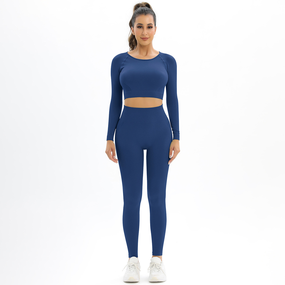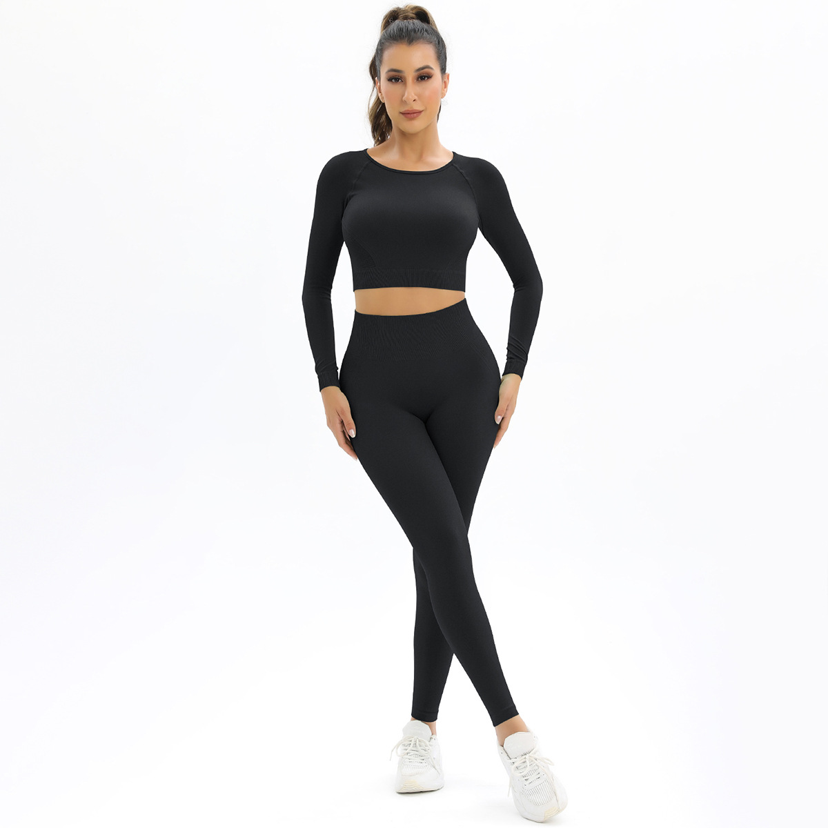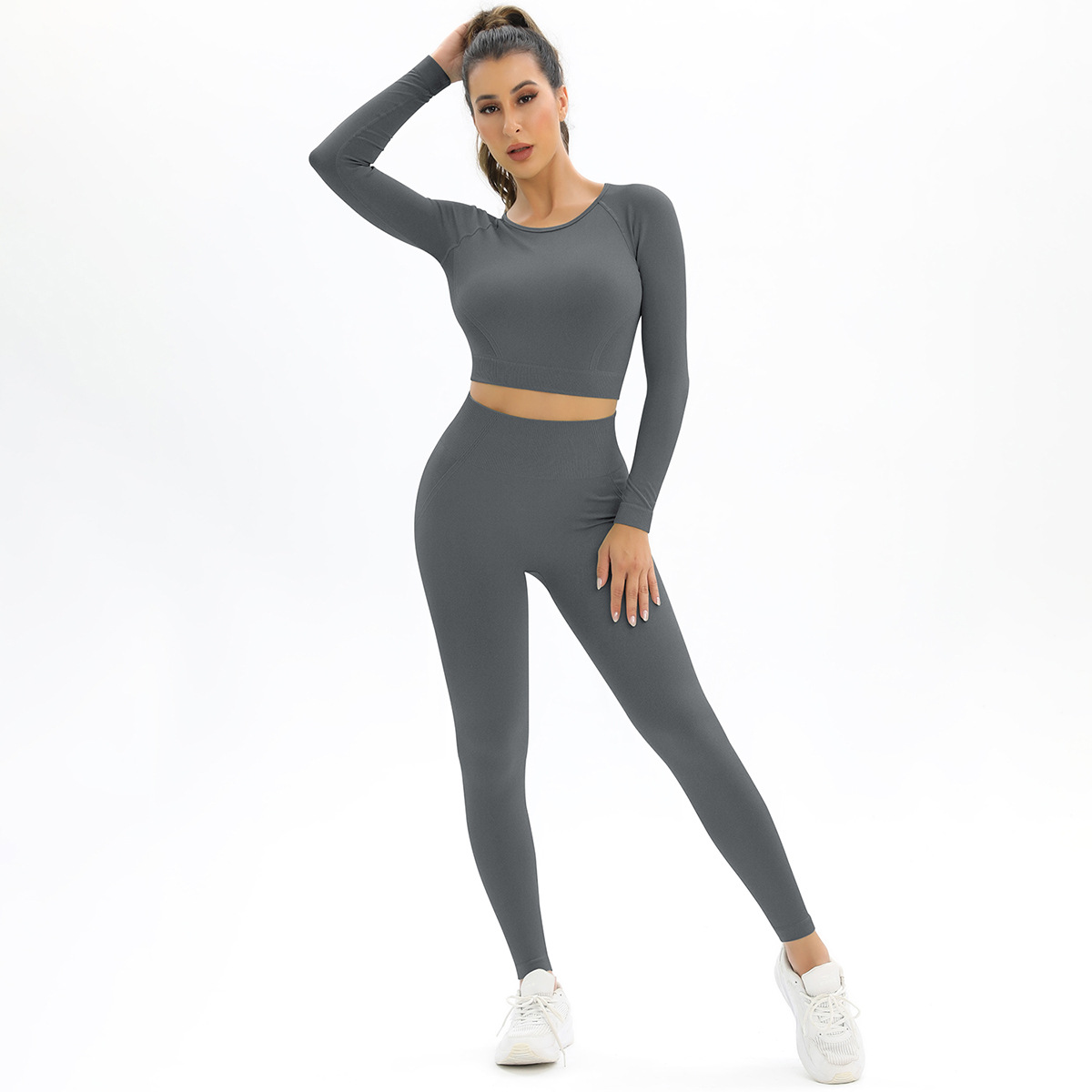 Peach Seamless Knitting Backless High Elastic Long Sleeve Yoga Suit Sports Running Fitness Two-Piece Set For Women