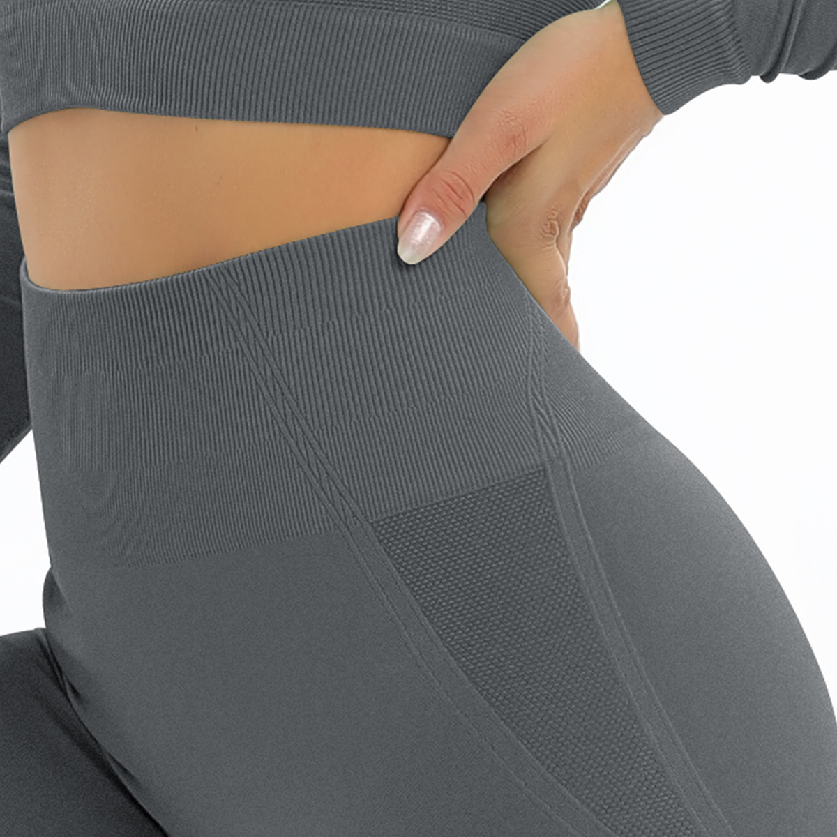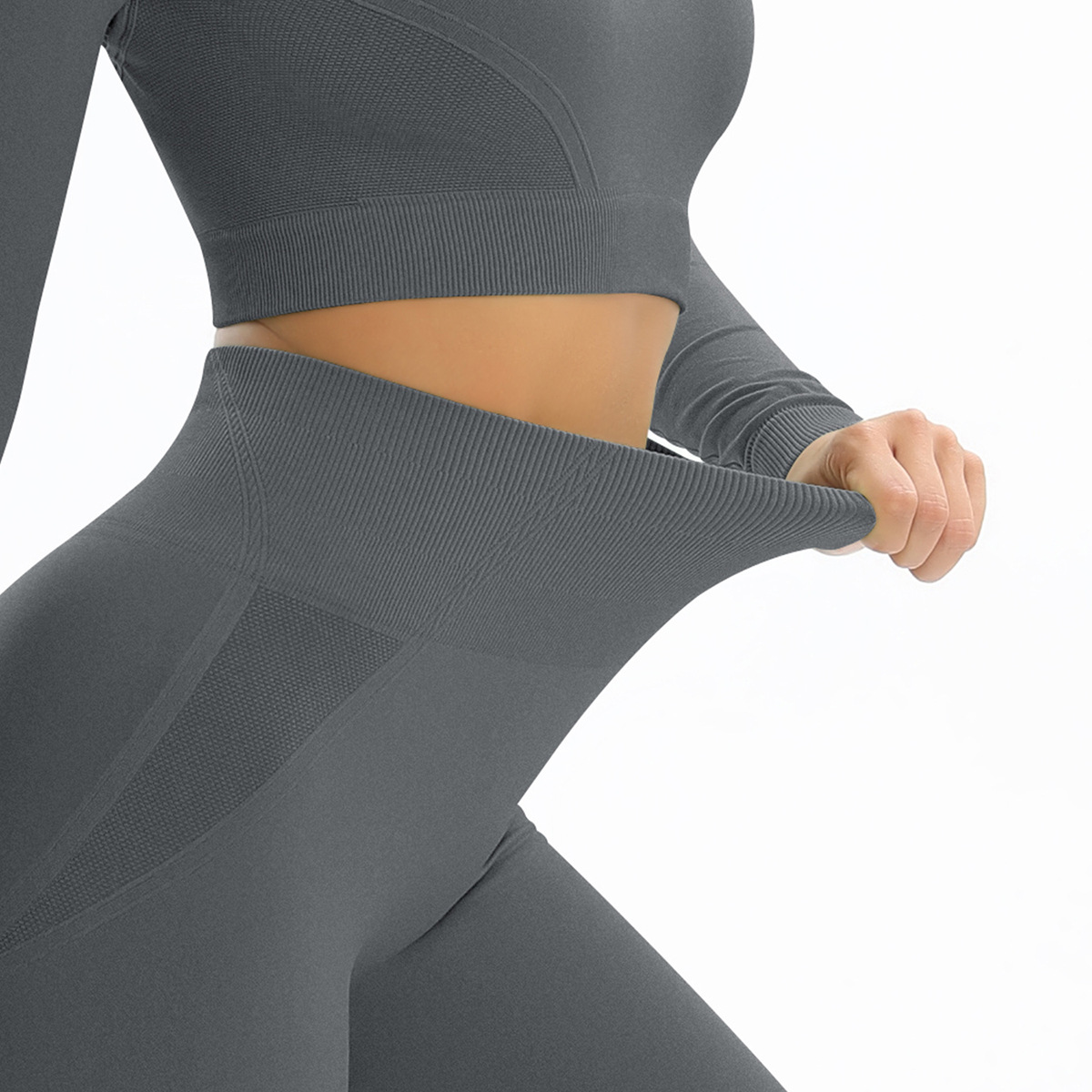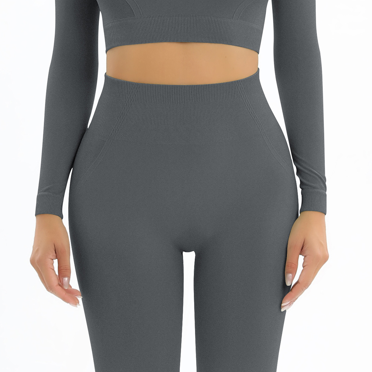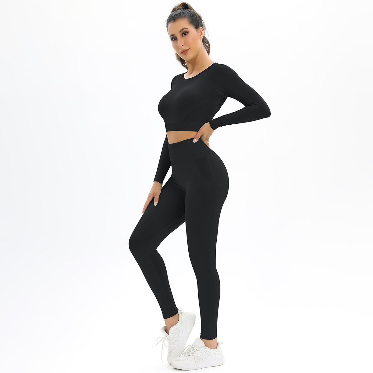 Peach Seamless Knitting Backless High Elastic Long Sleeve Yoga Suit Sports Running Fitness Two-Piece Set For Women